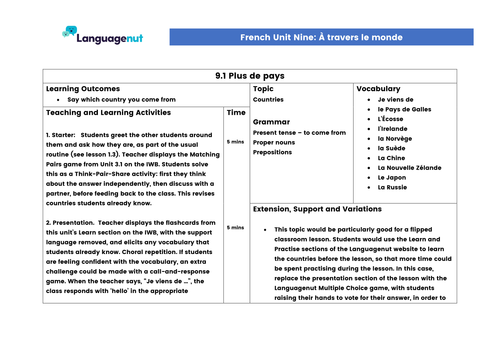 Languagenut Lesson Plans Resources French Unit 9 Around The World Teaching Resources